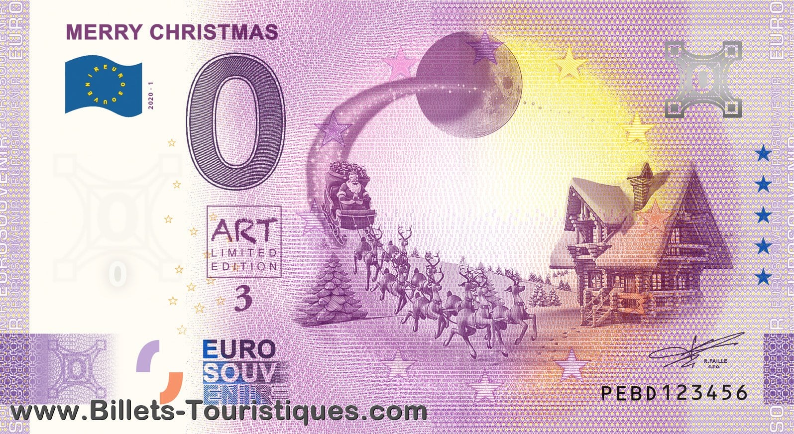 L'ensemble du tirage présente le visuel "cinq étoiles". Le billet fait partie d'une série transnationale : les amorces sont toutes différentes, mais la série est reconnaissable au logo "ART limited edition" + numéro.
