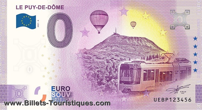 Représente : Sur le billet, le train Panoramique et le Puy-de-Dôme, qui (...)