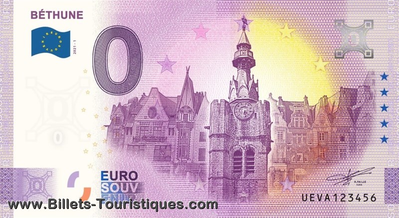 Représente : Le billet présente la Grand-Place et le beffroi de la ville (...)