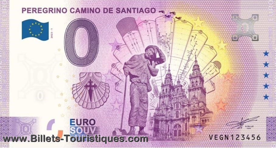 REMARQUE 1 : le visuel de présentation fourni par EBM et qui est en ligne ici ne correspond pas au billet diffusé par la suite : a été rajouté à droite le logo de la coquille européenne de l'Itinéraire Culturel du Conseil de l'Europe qui permet d'homogénéiser le balisage des itinéraires pédestres vers Compostelle au niveau européen.