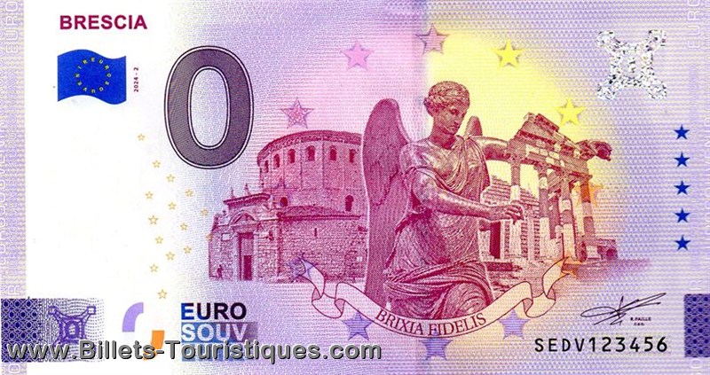 - le billet colorisé + surcharge lie-de-vin verticale à gauche "BRIXIA NUMIFIL 13-14/09/2024"
