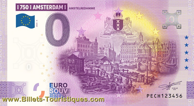 REMARQUE - Ce billet fait partie d'une série de 13 consacrée aux 750 ans de la ville d'Amsterdam qui est émis à raison de deux billets tous les deux mois entre octobre 2024 et septembre 2025.
