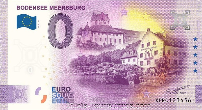 Représente : Le billet présente une vue du château de Meersbourg qui (...)