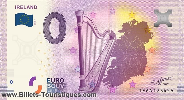 Représente : Le visuel du billet montre une carte de l'Irlande et une (...)